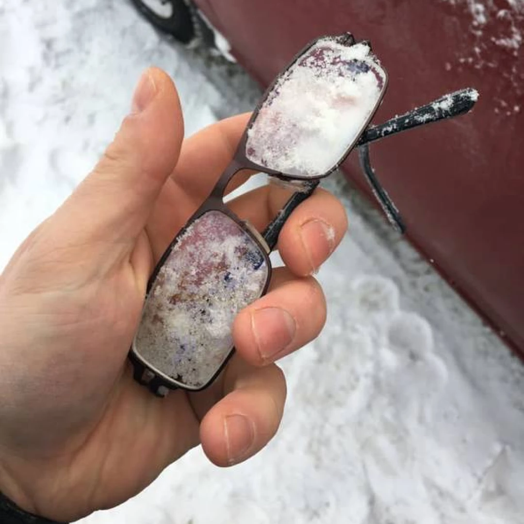 Через неделю клиент оказался на том же парковочном месте, случайно заметил в сугробе знакомый силуэт и узнал свою потерю! Радостно отряхнул снег, поправил слегка погнувшуюся оправу (скорее всего, на них наступили) и надел любимые очки. Линзы были совершенно невредимы.
